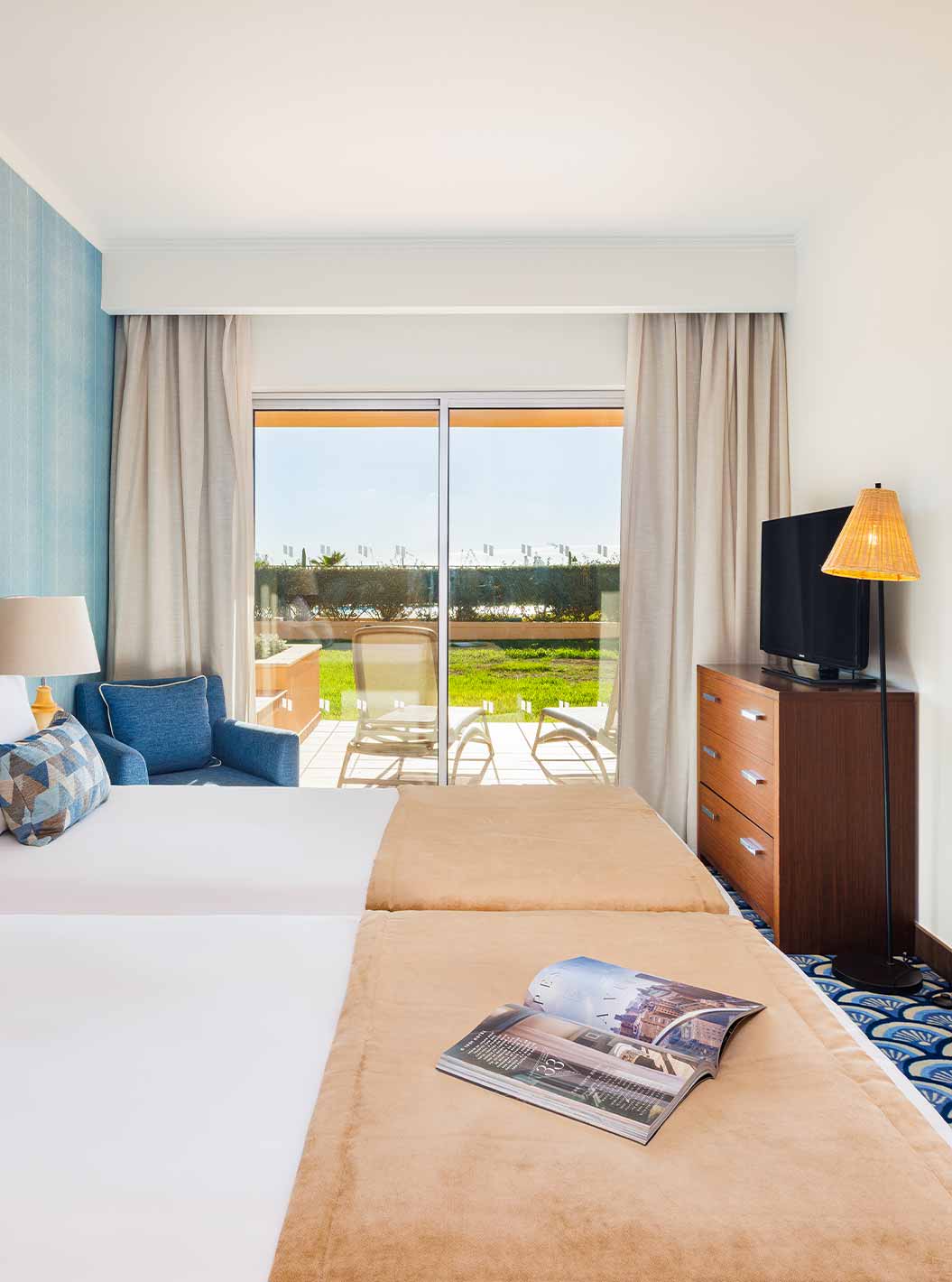 La Villa 3 Habitaciones Premium Vista Mar del Pestana Alvor Beach Villas tiene habitación con dos camas y aire acondicionado