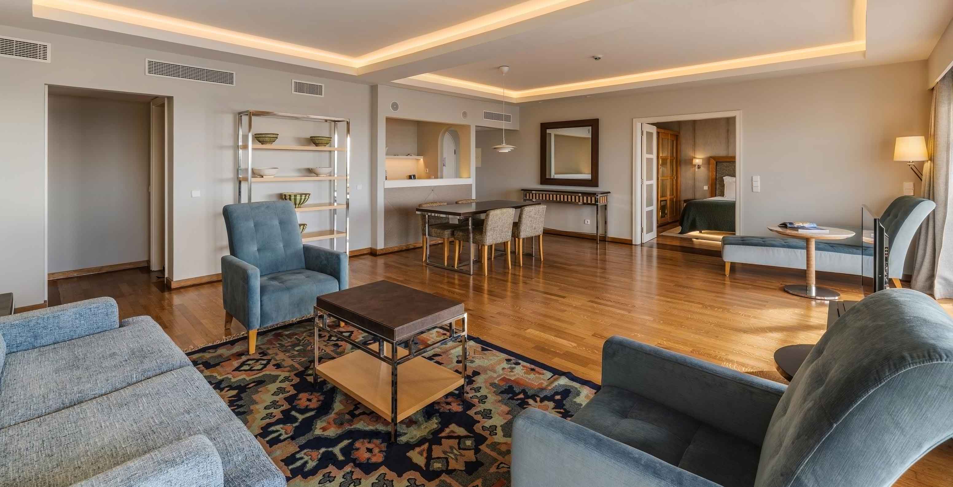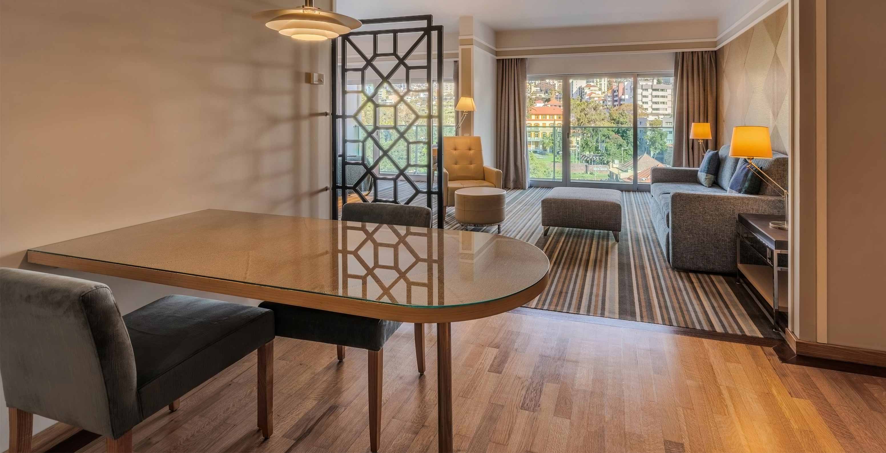 Pestana Carlton Madeira, een hotel in het centrum van Funchal aan zee, heeft een ruime receptie met elegante decoratie