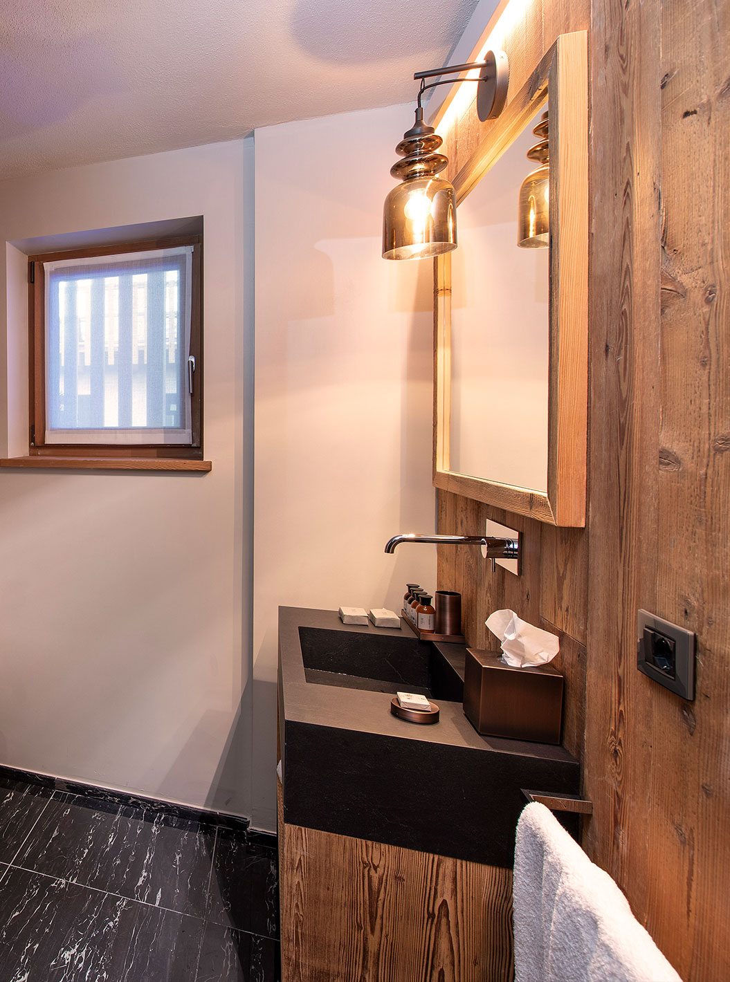 The spa at Le Massif Courmayeur is a wellness retreat inspired by the energy of the mountains. The spa features indoor and outdoor water circuits, indoor and outdoor saunas, a Turkish bath, and a jacuzzi.